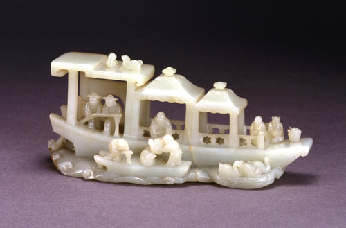 白玉人物船