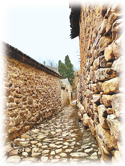 青石小路,在村子交错蜿蜒,油润光滑,密密实实。路边的野草,湿漉漉,毛茸茸,让石路写满了生机。路旁,散布着大大小小的院落,石头房屋,层层堆砌,这些修建于明清时的院落,一派古意盎然。