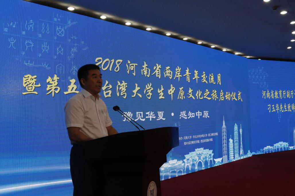 刁玉华代表省教育厅在致辞中表示,自2013年以来已成功举办了四届台湾大学生中原文化之旅活动,共邀请300余名台湾师生来豫参访交流,活动通过文化参访、讲座、座谈、课程互动等形式让台湾学子能更好的体会中原文化,加深豫台学子的沟通交流。他希望承接本次活动的各个高校要热情、周到、安全地做好服务,为来自宝岛台湾的青年学子留下一个美好的回忆。