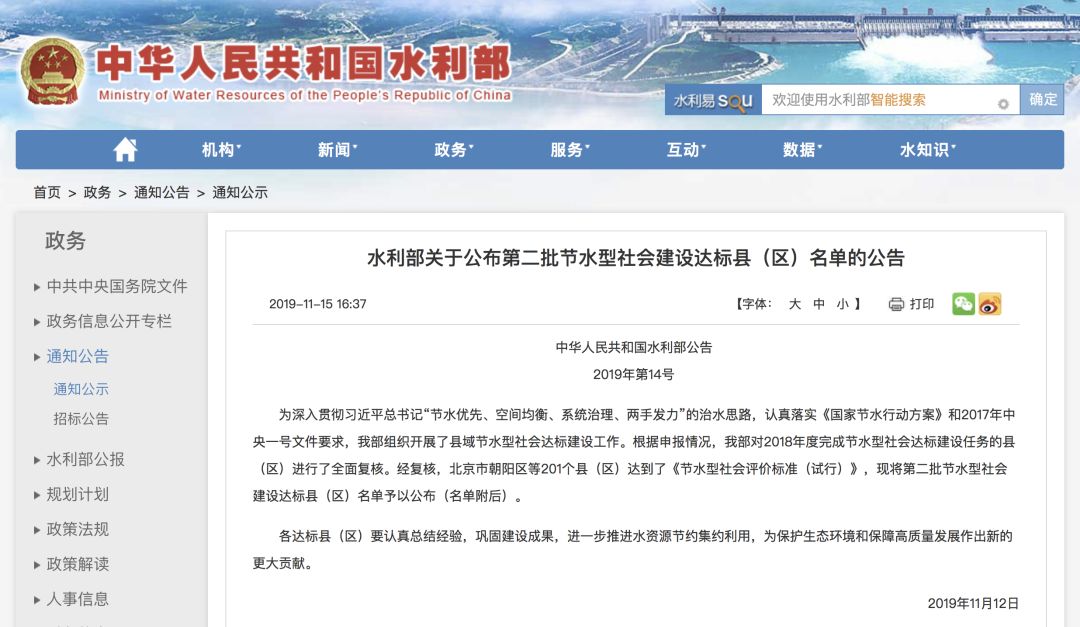 水利部关于公布第二批节水型社会建设达标县(区)名单的公告