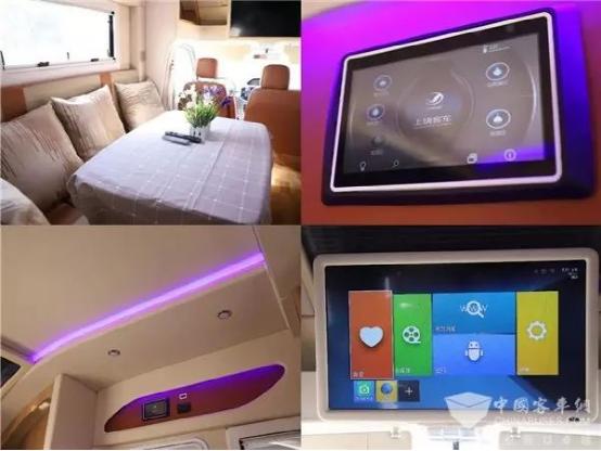 打开车门,自动升降踏板自动伸出,方便老人和小孩上下车。进入房车的内部可体会到麻雀虽小五脏俱全:驾驶区、休闲区、厨房、卫生间、卧室一应俱全。中控集成的控制面板将车内所有的操作都集合在这小小的屏幕上,使得操作一目了然,更加简便;超大屏幕WiFi电视让您的出行娱乐更加丰富;原木色的板材搭配上亮色的沙发座椅,沉稳中又不失活力;电动的升降桌满足日常休闲,夜晚降下高度与沙发重合就是一张舒适的沙发床,让你酣然入梦。
