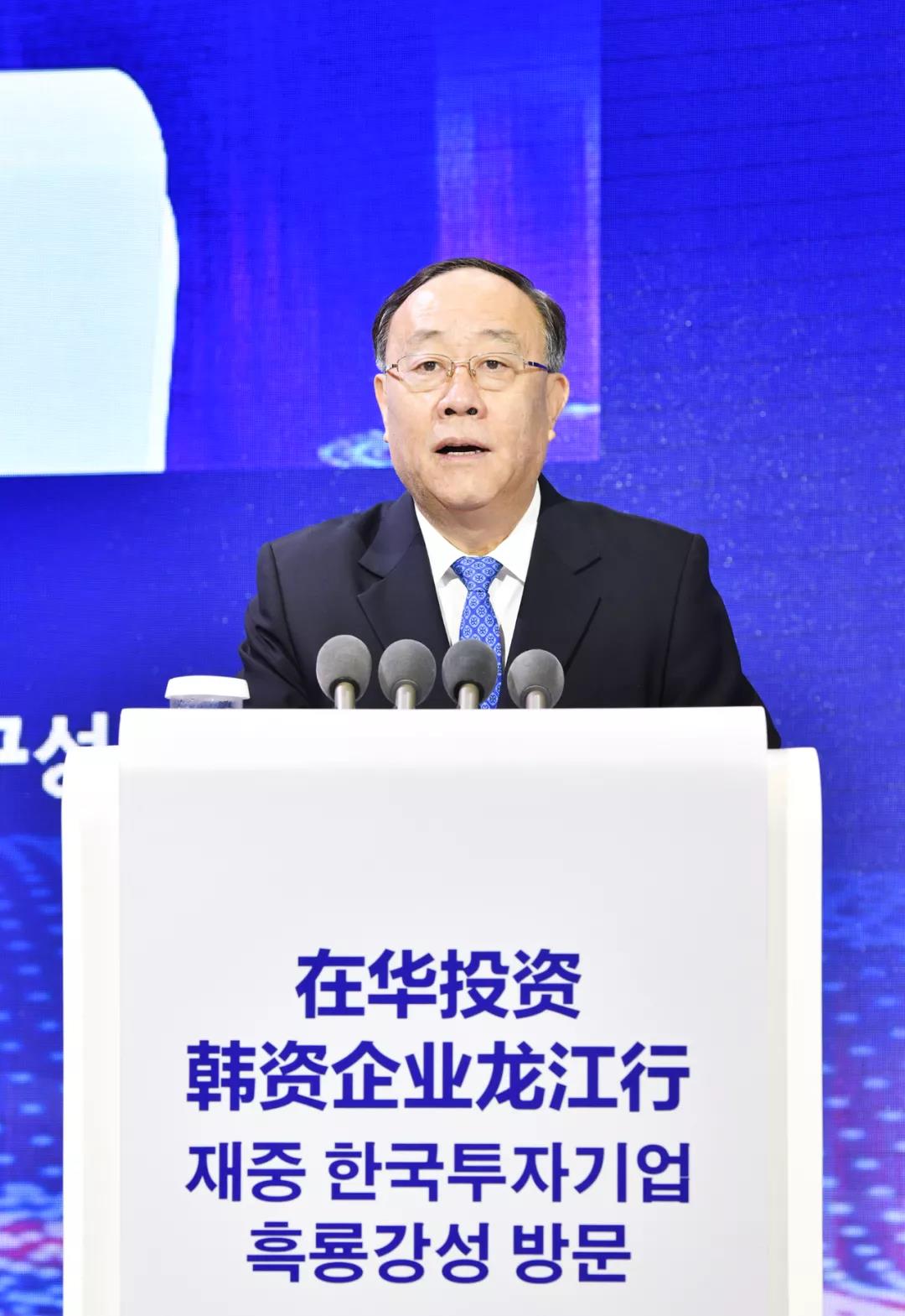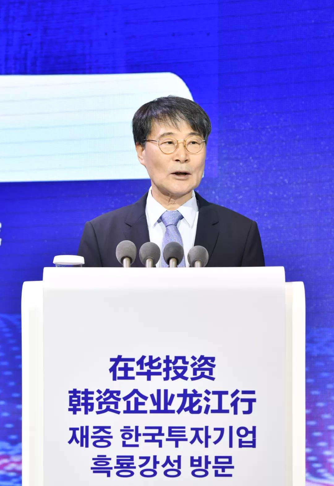 胡昌升代表黑龙江省委省政府对各位嘉宾的到来表示热烈欢迎。他说,黑龙江省是中国位置最北最东的省份,是国家重要的商品粮生产基地、绿色食品产业基地、重型装备生产制造基地和能源及原材料基地。这里农业资源优势得天独厚,旅游资源优势独具特色,现代工业体系较为完备,科教人才实力雄厚,对俄和东北亚开放合作区位优势明显,发展资源要素丰富。韩国与黑龙江在资源条件、经济结构和发展水平等方面互补性强,在绿色优质高效农业、文化时尚产业、电子信息产业、机器人及智能装备产业、汽车及零部件产业、石油及石化产业、冰雪旅游产业等领域可进一步加强合作。韩国企业来黑龙江省开展投资合作潜力巨大,未来可期,我们将在政策扶持上持续加大力度,在要素保障上持续夯实基础,在营商环境上持续优化提升,扎实做好服务保障。真诚希望黑龙江省与韩国各地区各领域实现合作,抒写更多精彩华章。