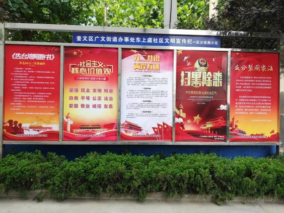 我们将中央对台大政方针、习近平总书记涉台重要论述等涉台知识制作成图文并茂的宣传贴画,张贴到东上虞社区内各居民小区宣传栏上,让广大居民走出家门,就能看到、了解到丰富的涉台知识。涉台知识宣传贴画将定期进行更换,让国家对台方针政策、台湾相关知识走进社区、贴近居民、入眼入心。