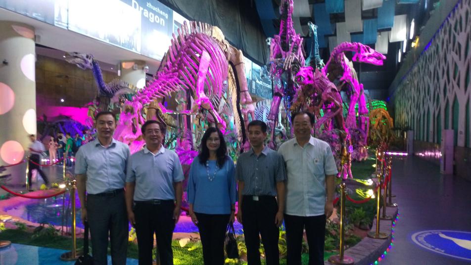 9月13日下午,台北市民意代表秦慧珠率领的台北市松山区基层交流团一行20人,来诸城恐龙国家地质公园参访。“2014年潍坊风筝会期间我来过这里,很受震撼,这次带上他们一起来开开眼界。”秦慧珠说,因为对恐龙谷的“念念不忘”,在淄博参加活动的他们,专程驱车来到诸城,“约会”龙城。