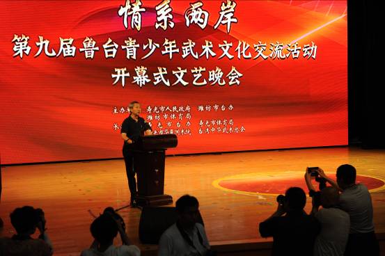 山东省台办副主任曹晓武宣布本届鲁台青少年武术交流活动开幕,并为寿光市海峡两岸交流示范点授牌。