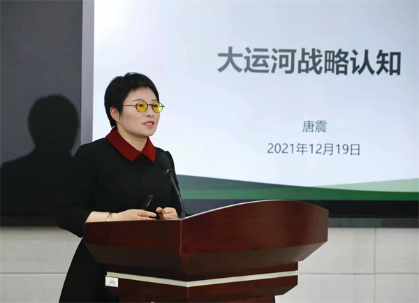 主题演讲环节,河海大学商学院副院长、大运河研究中心常务副主任唐震教授以“大运河战略认知”为主题,对国家大运河文化保护传承利用规划纲要做详细解读。并重点对河海大学大运河中心战略定位与战略重点进行了阐述。她表示,围绕“高层次、国际化、入主流、有特色”的目标要求,大运河研究中心将以河海大学世界一流“水”特色优势为核心能力和战略协同,保护传承利用大运河文化,提升大运河水文化品牌,加强大运河国际传播,为政府和企业提供智库支撑,促进合作单位共同发展,赋能大运河流域文化升级和产业发展,支撑中国大运河的国内国际战略布局。
