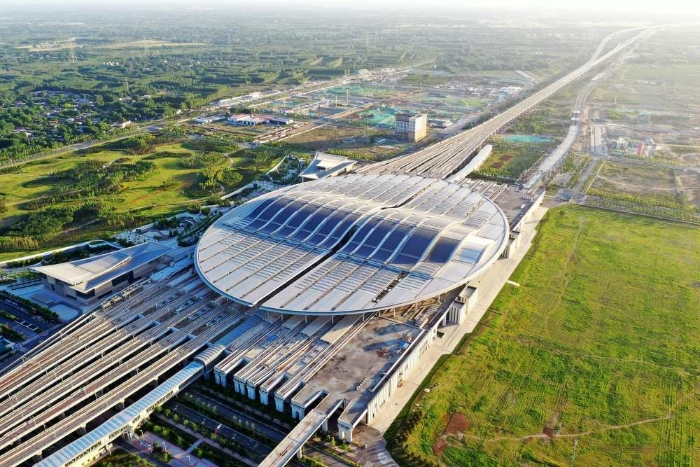 这是雄安站(6月2日摄,无人机照片)。雄安站位于雄安新区昝岗片区,是雄安新区开工建设的第一个重大基础设施项目,具有标志性意义。新华社记者 朱旭东 摄