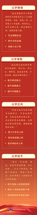 以学铸魂推动精神洗礼,以学增智强化能力提升,以学正风促进作风转变,以学促干推动事业发展。