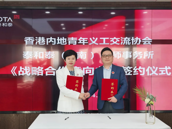 香港内地青年义工交流协会理事、历下区海联会理事蒋楠代表协会分别与泰和泰律师事务所和东华园区运营管理有限公司有关负责人签订战略合作协议。